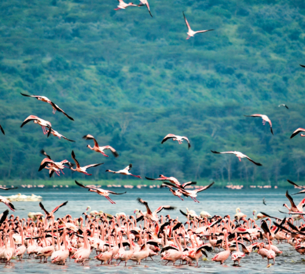 Have an early morning game drive in search of leopard and rhino returning to the lodge for breakfast. Check-out after breakfast and continue to Lake Naivasha Bird Sanctuary arriving at Lake Naivasha Sopa Lodge at midday for lunch. Lake Naivasha is one of the Great Rift Valley's jewels, reflecting the tranquil beauty of an African sky and the surrounding mountains is temporarily distorted as flocks of graceful flamingos and pink-backed pelicans settle on the water. Relax after lunch at the hotel and have chance to enjoy the hotel facilities and optional activities on offer. Dinner and overnight at Lake Naivasha Sopa Lodge.